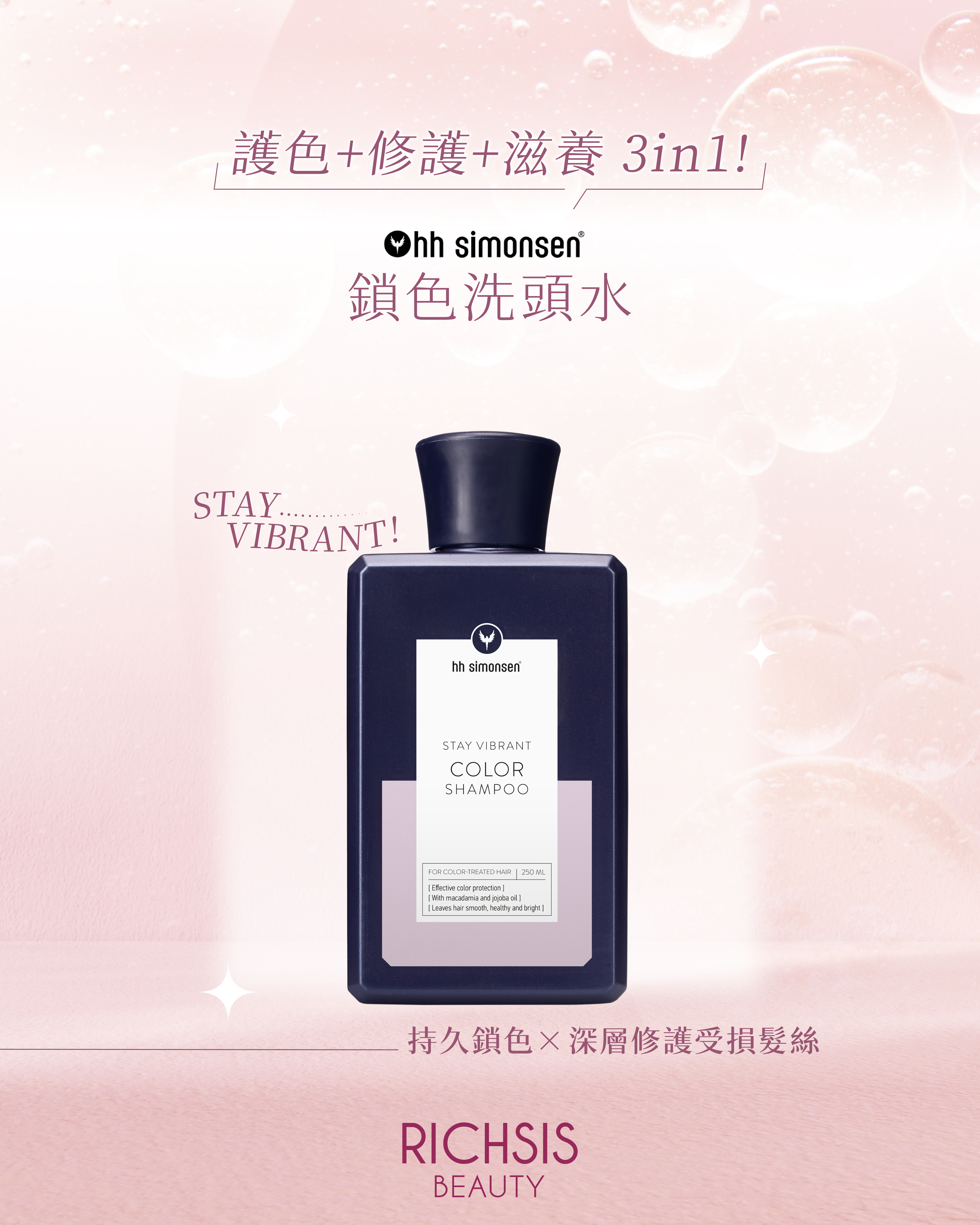 「雙效合一:持久鎖色X深層修護受損髮絲」
