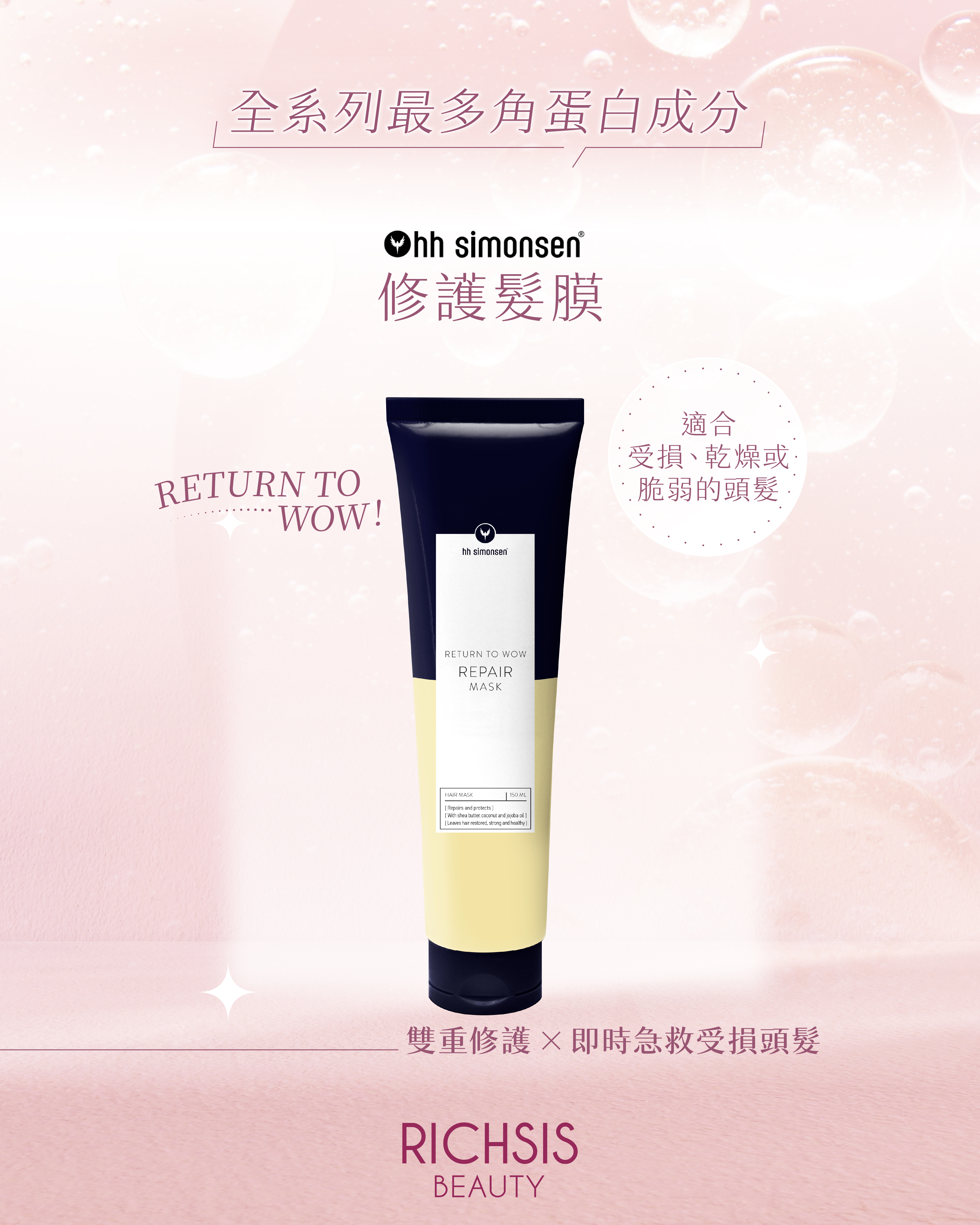 護髮步驟如同護膚程序,需按照正確的先後次序,先讓養分有效滲透髮絲,並在最後鎖住養分,才能發揮最佳修護效果。換言之,應先使用適合的洗髮水徹底清潔髮絲,再按需要配合髮膜深層修護、注入養分,最後以護髮素鎖住營養、防止流失。遵循正確護髮程序,才能讓頭髮真正吸收所需養分,恢復柔順亮澤。 ——————————————————————