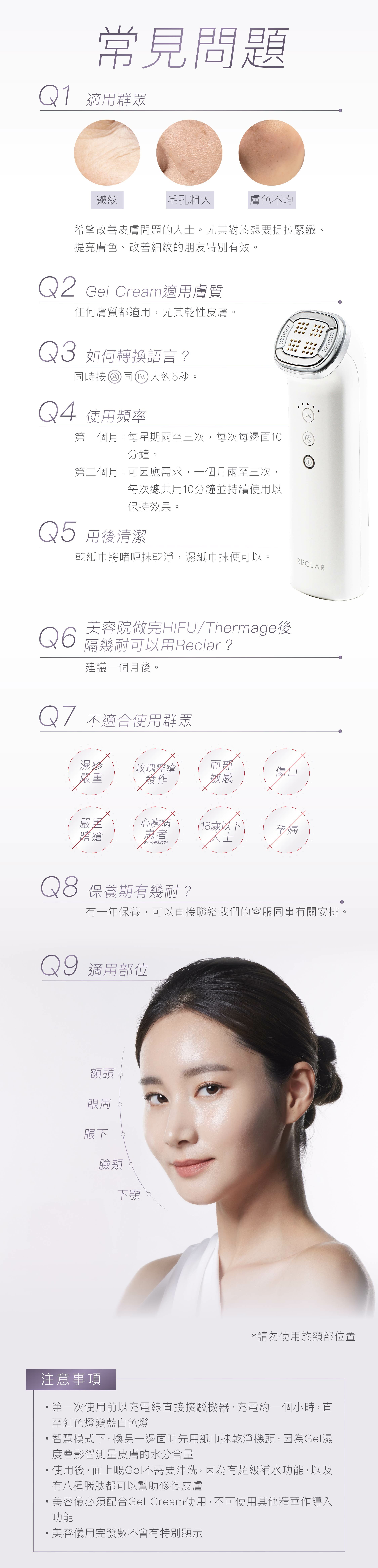 此美容儀並非導入機,請勿配合任何精華使用。必須使用專屬凝膠以確保安全及效果。